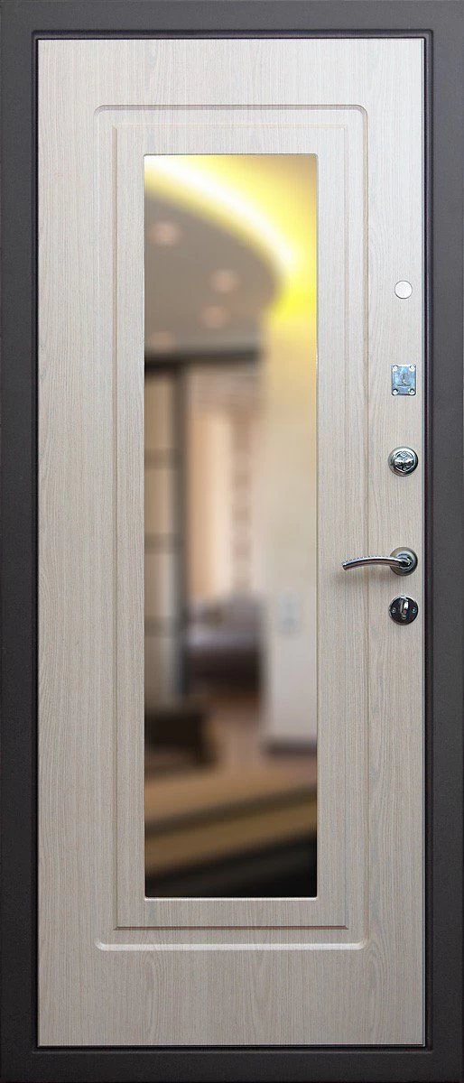 Прочная металлическая Дверь с зеркалом DZ385 по цене от 30 000 руб. под заказ в любой комплектации. Вы можете выбрать материал, замки, цилиндры и многое другое. Производим сами! Быстрая доставка и установка в Аше.