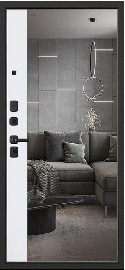 Надежная входная Дверь Scandi с зеркалом премиум класса по цене 45 167 руб. Большая толщина стали защитит от проникновения в ваш дом, квартиру или коттедж. Используется очень качественная фурнитура: замки, цилиндры, ручки, защелки. Покрытие и отделка двери изготовлено под внимательным контролем производителя. Дверь имеет долгий срок службы и гарантию.