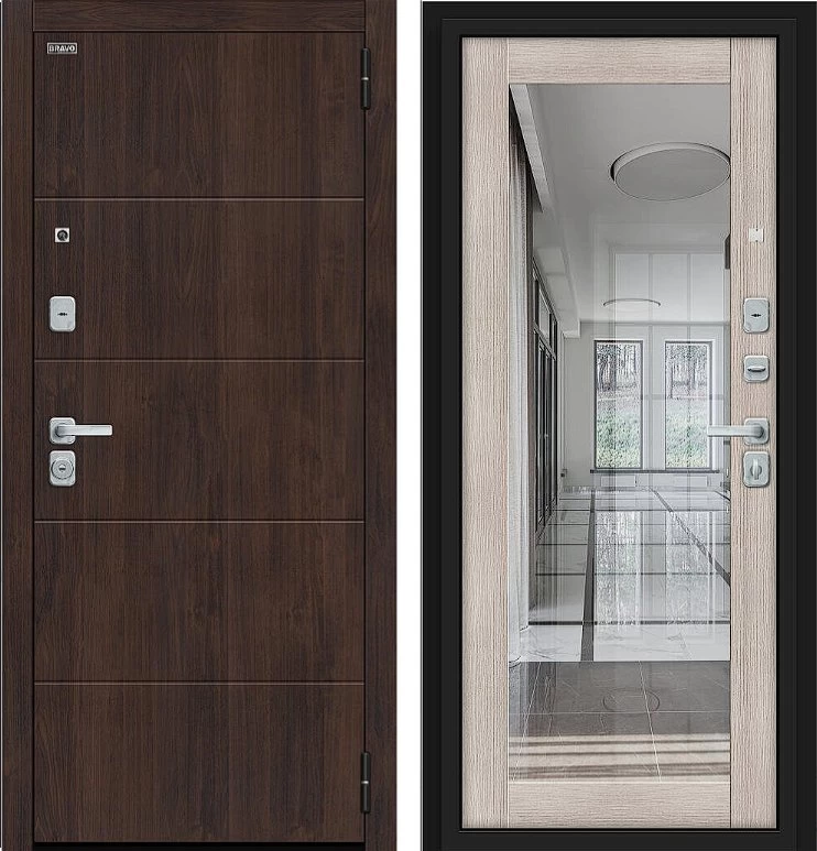 Надежная входная Дверь Браво Флэт/BChrome Almon/Cappuccino Melinga премиум класса по цене 42 567 руб. Большая толщина стали защитит от проникновения в ваш дом, квартиру или коттедж. Используется очень качественная фурнитура: замки, цилиндры, ручки, защелки. Покрытие и отделка двери изготовлено под внимательным контролем производителя. Дверь имеет долгий срок службы и гарантию.
